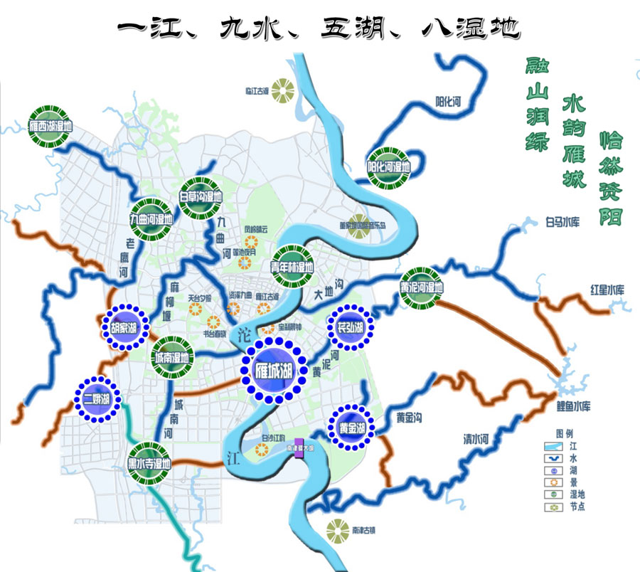 该概念性规划绘就中心城区”一江、九水、五湖、八湿地“的生态水网格局,制定出”引水润城、连水环城、净水怡城、美水优城、拥水兴城“的五大规划策略,最终打造成”融山润绿、水韵雁城、怡然资阳“的资阳特色城市水生态系统。该规划以习近平总书记“山水林田湖是一个生命共同体”重要论述为指导思想,规划方案充分体现了城市绿色发展、生态优先,人与自然ayx爱游戏官方app平台入口和谐共生的发展理念,得到了市委市政府主要领导一致好评。该规划构建起了资阳“山、水、城、人”深度融合的人与自然和谐共生的怡然画卷,同时系统制定了治理和修复资阳水生态系统具体的策略和措施,对后续水生态相关规划设计项目具有较高的参考价值。